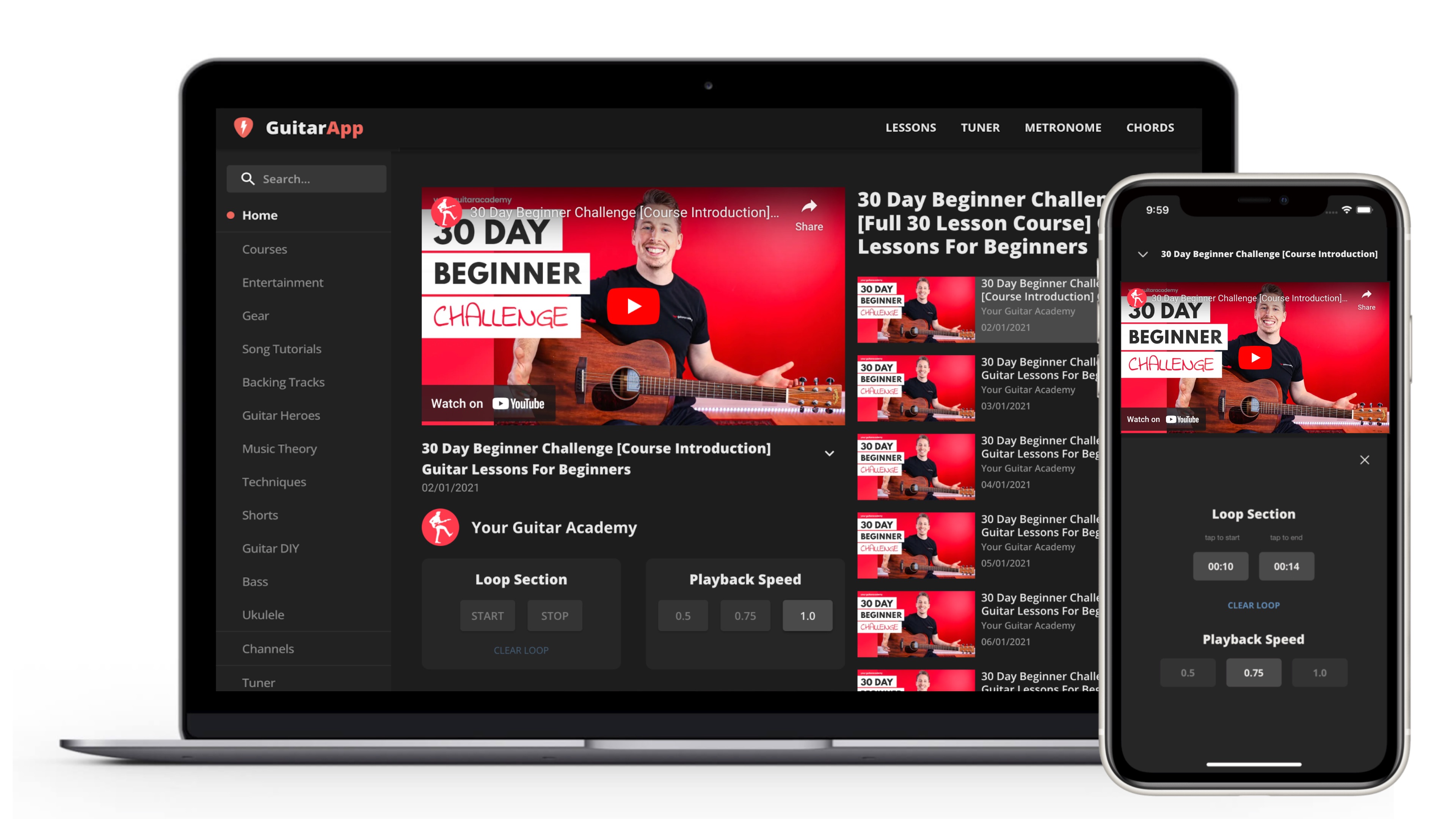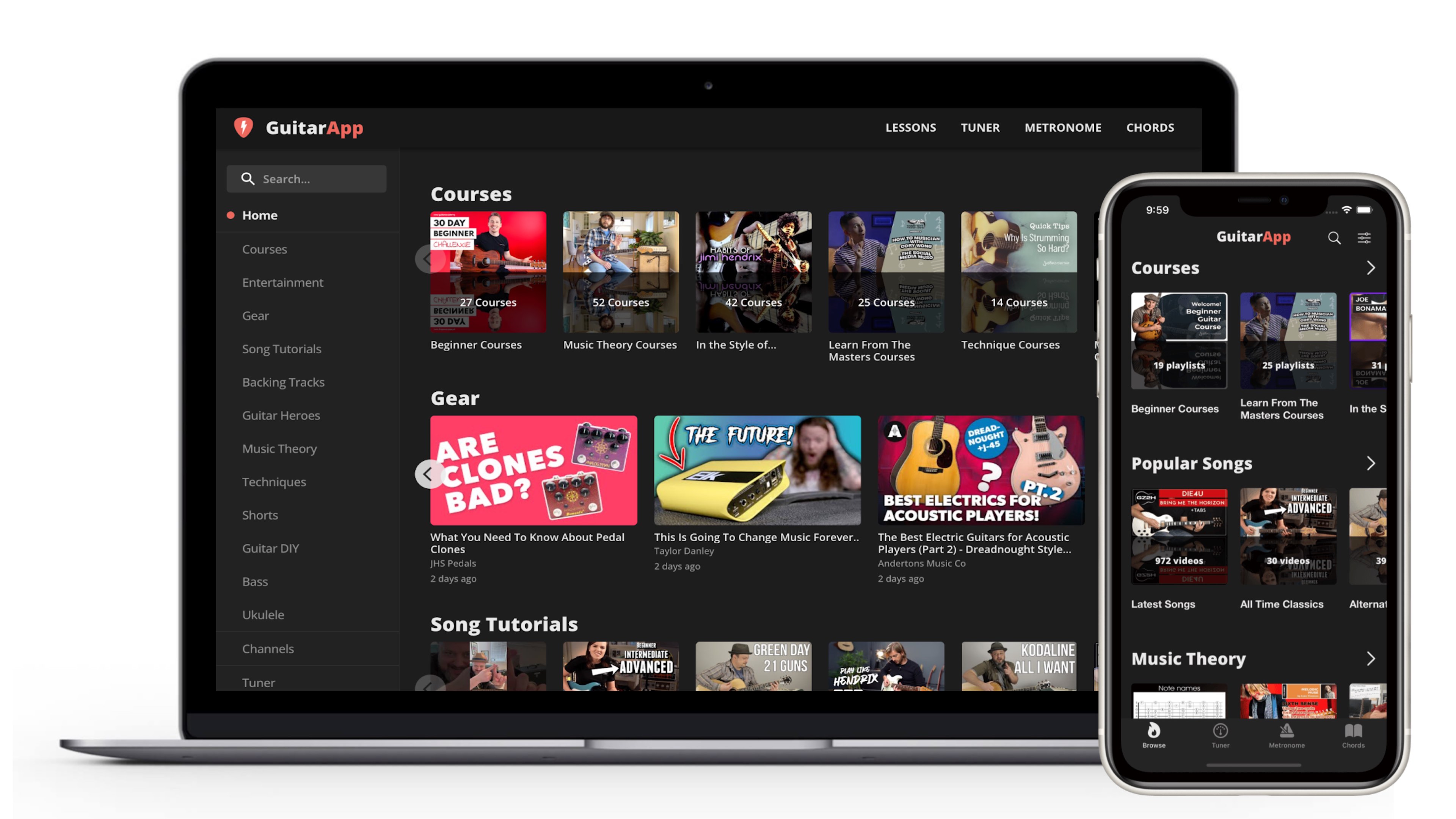 GuitarApp is a free guitar learning app with over 200k free guitar lessons, an online tuner, metronome and interactive chord library. You can use it in your web browser or you can Download it on the App Store. The best quality tutorials and lessons from the best YouTube guitar channels are curated into categories and courses which update daily! The suite of tools include loop and slowdown on every video, an online tuner, metronome and an interactive chord library, all in a single free app. We also have a series of fun games to make learning music theory more fun. Try Chordle as a challanging fun way to train your ear to identify chords. It's based on the hugely popular Wordle and we post a new challange daily! Maybe you're looking for some ear training apps or you want to learn how to identify the musical intervals? Try our Interval Trainer which challanges you to identify as many intervals as you can in 1 minute!